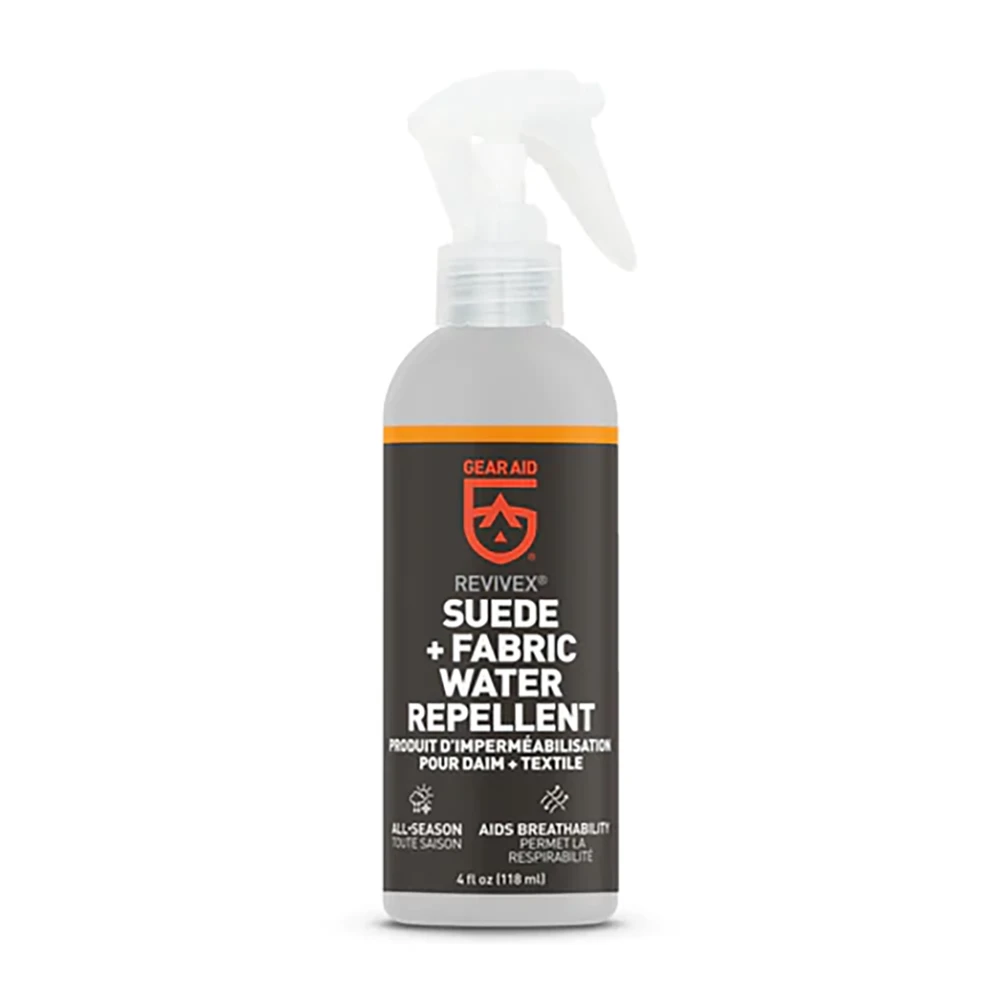 Revivex Suede and Fabric Water Repellent is a waterproof spray for nubuck, suede and waterproof-breathable footwear. This protectant is useful to keep footwear looking good and feet dry. The spray bottle is easy to use and prevents staining of all types of shoes including winter suede boots, hiking boots and sneakers. For a quick treatment, use Revivex Suede and Fabric Water Repellent to get kicks shedding water in no time flat.