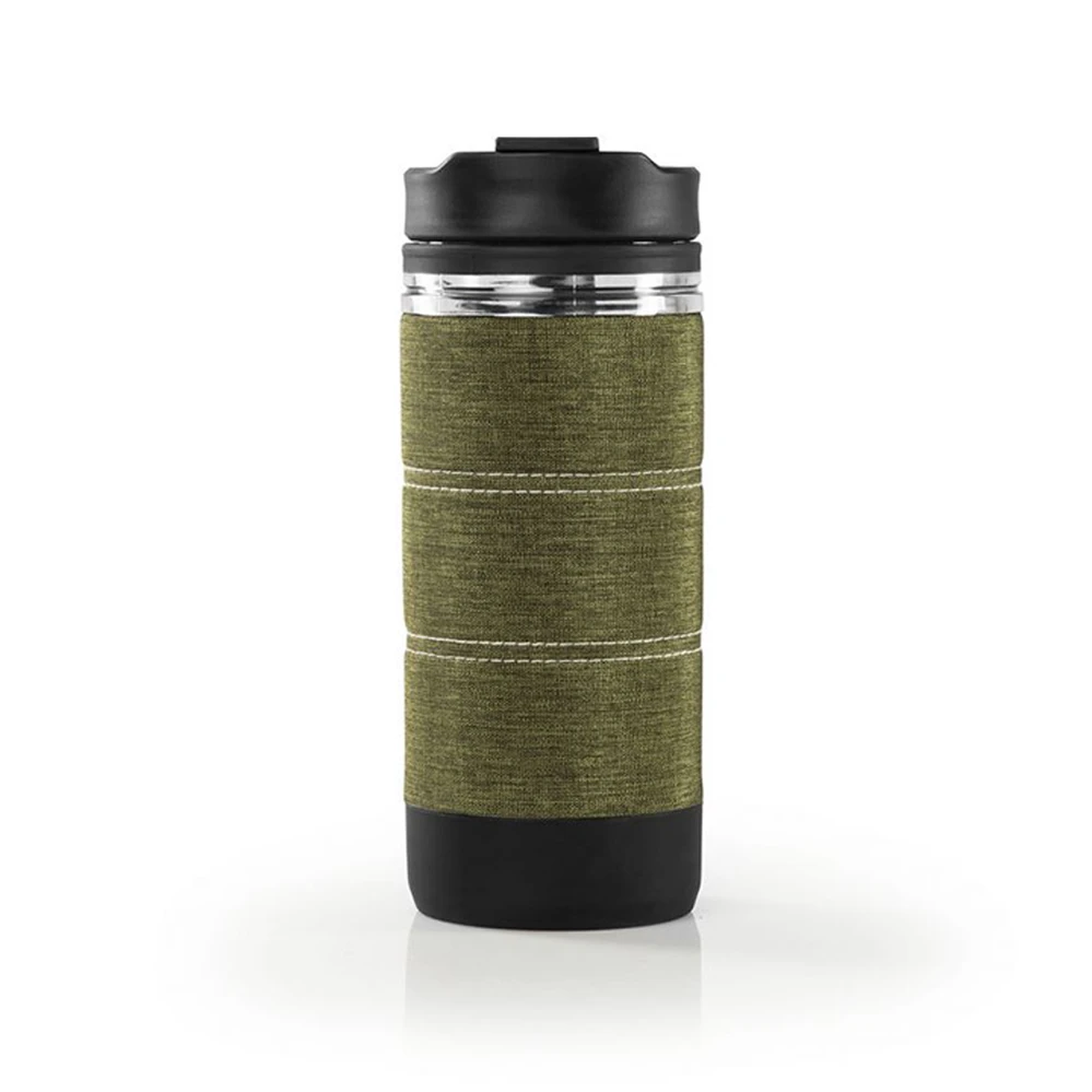 This is the portable coffee press perfected. A precision-engineered inner sleeve acts as a no-mess press, then becomes an additional wall of insulation to keep your coffee – or tea – hot. The copolyester construction is shatter-resistant and BPA-free, the secure top seals in the heat and helps prevent spills, a rPET-wrapped insulated sleeve adds warmth and protects your hands, and the whole thing fits neatly into your cup holder. Engineered sleeve cloth made with rPET that helps to reduce waste.