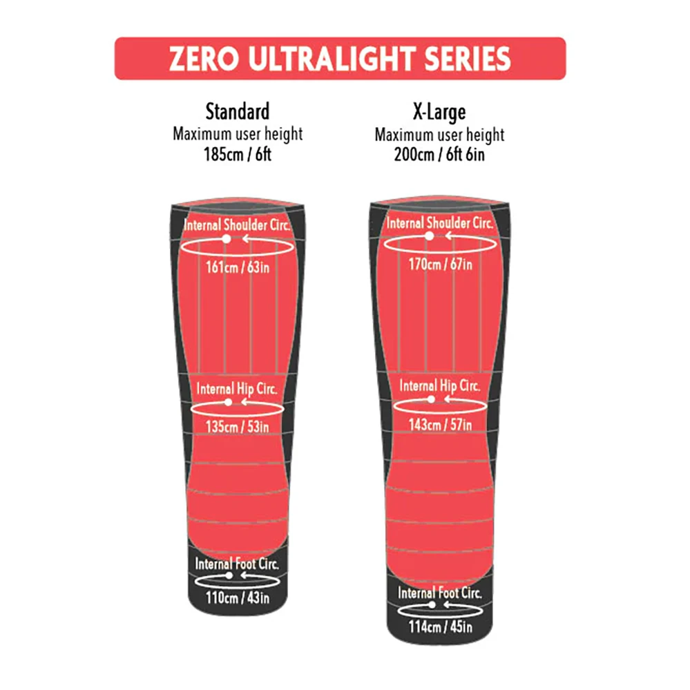 Monts latest offering is the world’s lightest full-size down sleeping bag, perfect for the ultralight enthusiast who counts every gram! Maximise your backpack space & minimise your carried weight with the Zero UL Sleeping Bag. Perfect for spring and summer bike packing, ultralight bush walking in warmer climates or as a liner for your existing sleeping bag. The Mont Zero UL Sleeping Bag in XL weighs only 329g, packs to a size no more than a 1L bottle and accommodates a user up to 200cm tall (XL).  The Zero UL Sleeping Bag uses the World’s lightest downproof Nylon: Anti-Gravity Nylon. Superfine threads of only 7 denier are woven at over 520 threads per square inch producing an incredibly light, super smooth downproof fabric: Anti-Gravity Nylon weighs only, approximately, 21grams per square metre! Anti-Gravity Nylon is extremely light but also sufficiently durable thanks to its super-high thread count, mini-ripstop weave & a double cire heat treatment that also increases down-proofness. The exceptionally low weight of Anti-Gravity Nylon also allows down to loft to its full potential with minimal restriction; meaning more warmth with less down, less weight & less bulk.