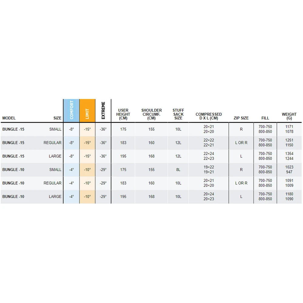 - Down loft: Â available in 700-750 or 800-850 loft, both tested by the IDFL